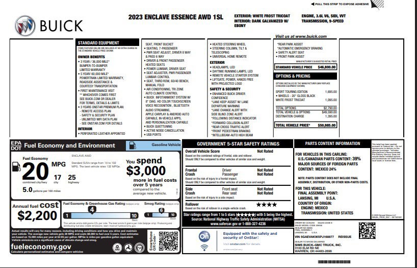6-Speaker Audio System Feature, 6-Way Power Front Passenger Seat Adjuster, 7-Passenger Seating, 8-Way Power Driver Seat Adjuster, Auto High-beam Headlights, Automatic temperature control, Brake assist, Delay-off headlights, Electronic Stability Control, Four wheel independent suspension, Front & Rear Park Assist, Front Bucket Seats, Front dual zone A/C, Fully automatic headlights, Garage door transmitter, Heated door mirrors, Heated Driver & Front Passenger Seats, Heated Steering Wheel, Illuminated entry, Outside temperature display, Perforated Leather-Appointed Seat Trim, Power Driver Lumbar Control Seat Adjuster, Power Liftgate, Power Passenger Lumbar Control Seat Adjuster, Power passenger seat, Preferred Equipment Group 1SL, Premium audio system: Buick Infotainment System, Radio: Buick Infotainment System AM/FM Stereo, Rear air conditioning, Rear window wiper, Remote keyless entry, SiriusXM w/360L, Speed-sensing steering, Sport Touring Edition, Sport Touring Liftgate Badging, Steering wheel mounted audio controls, Telescoping steering wheel, Tilt steering wheel, Traction control, Turn signal indicator mirrors, Unique Sport Grille w/Body-Color Surround, Variably intermittent wipers, Wheels: 20" Gloss Black, Wireless Apple CarPlay/Wireless Android Auto. Clean CARFAX.Recent Arrival!CHECK OUT OUR CUSTOMER REVIEWS ON GOOGLE & FACEBOOK. WE HAVE THE BEST-IN-CLASS REPUTATION! EXPERIENCE THE DON'S DIFFERENCE.* We are honest and transparent. We work hard to earn your business. We are committed to making your car buying experience fast, fun and easy!* We post our best price on every vehicle, every day.* Trade-in - we'll make you the best cash offer.* We will buy your vehicle regardless if you purchase from us or not.* We Finance Everyone!* No Surprises - we will gladly provide you a history report.* You live long distance. No problem! We sell vehicles from New York to California.* Don's Chevrolet GMC has been in business for over 20 years, and we are active in supporting our community. We are located at 720 N. Shoop Avenue in Wauseon, OH. Our location makes it a very simple drive from Swanton, Toledo, Fort Wayne, Angola, Bryan, Defiance, Napoleon or Jackson.* We don't just want to sell you a vehicle, we want to service you after for years to come! ** You can call us at 419-337-3010 to set up your appointment or confirm availability.* We are in 7:30 am - 7:00 pm on Monday and Thursday and 7:30 am - 6:00 pm on Tuesday, Wednesday and Friday, and 9 am - 3:00 pm on Saturday.Full Safety Inspection done on every used car, includes Oil Change and topping off all fluids.