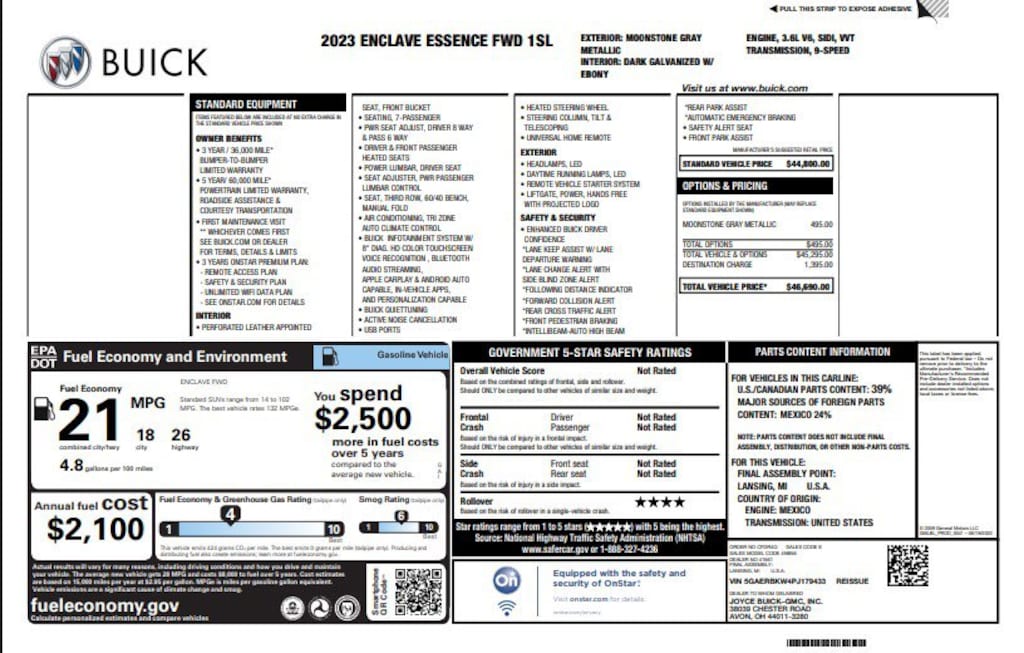 - 3 Years of OnStar & Connected Services Plan$1,500