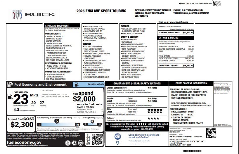 3rd row seats: split-bench, Alloy wheels, Auto High-beam Headlights, Automatic temperature control, Bose Premium 12-Speaker Audio System, Brake assist, Delay-off headlights, Driver 4-Way Power Lumbar Seat Adjuster, Driver 8-Way Power Seat Adjuster, Electronic Stability Control, Front dual zone A/C, Front Passenger 4-Way Power Lumbar Seat Adjuster, Front Passenger 6-Way Power Seat Adjuster, Fully automatic headlights, Heated door mirrors, Heated front seats, Heated steering wheel, Illuminated entry, Navigation System, Perforated Leatherette Seat Trim, Power door mirrors, Power driver seat, Power Liftgate, Power passenger seat, Preferred Equipment Group 1SM, Premium audio system: Buick Infotainment System, Rear air conditioning, Remote keyless entry, Speed-sensing steering, Steering wheel mounted audio controls, Telescoping steering wheel, Tilt steering wheel, Traction control, Variably intermittent wipers, Wireless Apple CarPlay, Wireless Google Android Auto. CARFAX One-Owner. Clean CARFAX.