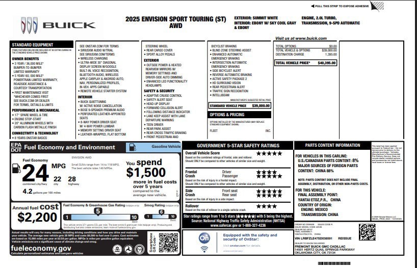 30" Diagonal LCD Display, Auto High-beam Headlights, Automatic temperature control, Bose Premium 9-Speaker Audio System Feature, Brake assist, Delay-off headlights, Driver 4-Way Power Lumbar Seat Adjuster, Driver 8-Way Power Seat Adjuster, Electronic Stability Control, Exterior Parking Camera Rear, Four wheel independent suspension, Front Bucket Seats, Front Passenger 6-Way Manual Seat Adjuster, Fully automatic headlights, Heads-Up Display, Heated door mirrors, Illuminated entry, Low tire pressure warning, Memory seat, Navigation System, Perforated Leather-Appointed Seat Trim, Power door mirrors, Power Liftgate, Preferred Equipment Group 1SL, Premium audio system: Buick Infotainment System, Remote keyless entry, Steering wheel mounted audio controls, Telescoping steering wheel, Tilt steering wheel, Traction control, Variably intermittent wipers, Wheels: 20" Carbon Flash Metallic Alloy, Wireless Apple CarPlay/Wireless Android Auto. CARFAX One-Owner. Clean CARFAX