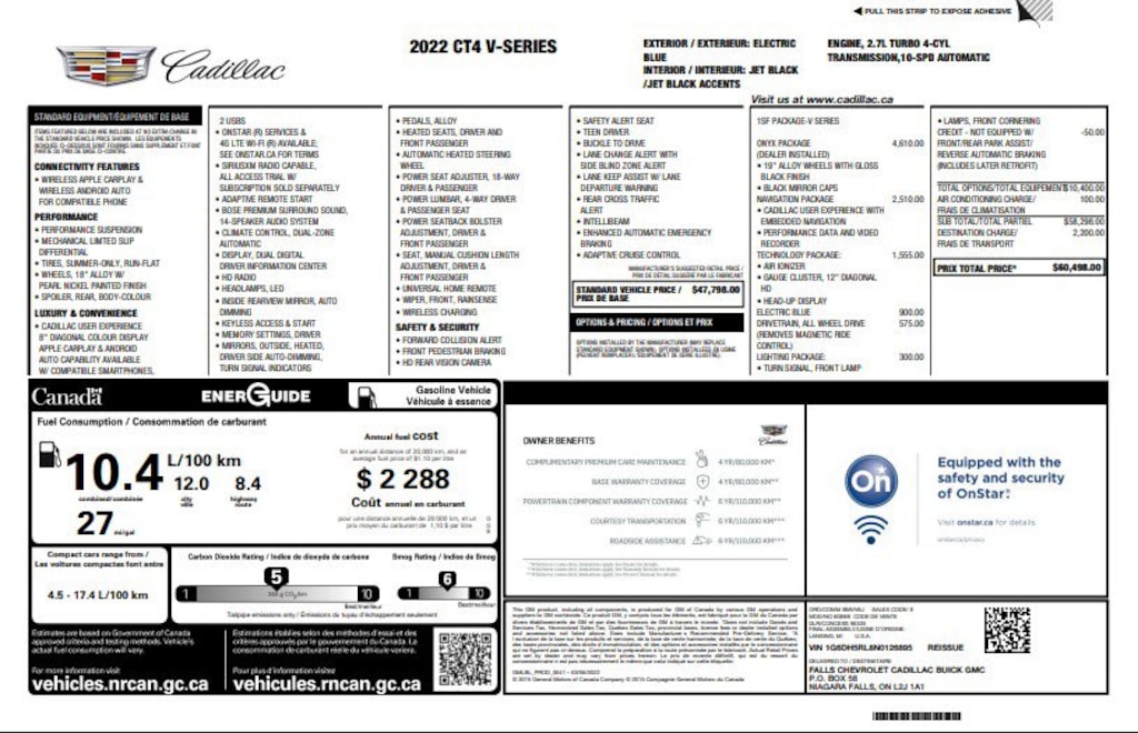 - On CT4-V Blackwing, certain vehicles built on or after 1-24-2022 through 4-10-2022, will not be equipped with Front and Rear Park Assist