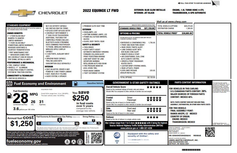 2 Rear USB Charging-Only Ports, 2 USB Ports & Auxiliary Input Jack, 2-Way Power Driver Lumbar Control Seat Adjuster, 6 Speaker Audio System Feature, 8-Way Power Driver Seat Adjuster, All-Weather Floor Liners (LPO), Alloy wheels, Auto High-beam Headlights, Bluetooth® For Phone, Brake assist, Cold Air Grille Shutter, Confidence & Convenience Package, Delay-off headlights, Driver Confidence II Package, Driver Convenience Package, Dual Zone Automatic Climate Control, Electronic Stability Control, Floor Liner Package (LPO), Four wheel independent suspension, Front & Rear Park Assist, Fully automatic headlights, Heated door mirrors, Heated Driver & Front Passenger Seats, Integrated Cargo Liner (LPO), Preferred Equipment Group 1LT, Premium audio system: Chevrolet Infotainment 3, Radio: Chevrolet Infotainment 3 System w/AM/FM, Rear Power Liftgate, Rear window defroster, Remote keyless entry, Remote Start, SiriusXM Radio, Speed-sensing steering, Steering wheel mounted audio controls, Tachometer, Telescoping steering wheel, Traction control, Variably intermittent wipers, Wireless Apple CarPlay/Wireless Android Auto. CARFAX One-Owner. Clean CARFAX.