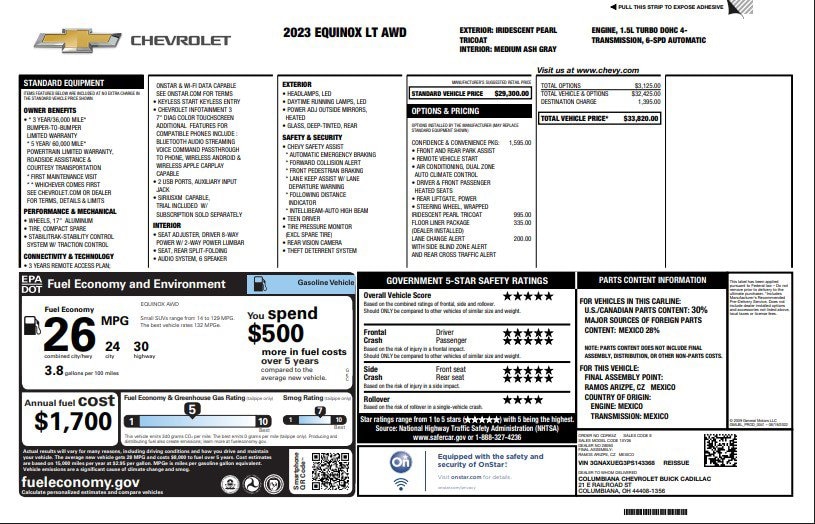2 Rear USB Charging-Only Ports, 2 USB Ports & Auxiliary Input Jack, 2-Way Power Driver Lumbar Control Seat Adjuster, 6-Speaker Audio System Feature, All-Weather Floor Liners (LPO), Alloy wheels, Auto High-beam Headlights, Bluetooth® For Phone, Brake assist, Confidence & Convenience Package, Delay-off headlights, Driver 8-Way Power Seat Adjuster, Driver Confidence II Package, Driver Convenience Package, Dual-Zone Automatic Climate Control, Electronic Stability Control, Floor Liner Package (LPO), Four wheel independent suspension, Front & Rear Park Assist, Fully automatic headlights, Heated door mirrors, Heated Driver & Front Passenger Seats, Illuminated entry, Integrated Cargo Liner (LPO), Lane Change Alert w/Side Blind Zone Alert, Outside temperature display, Power door mirrors, Power driver seat, Preferred Equipment Group 1LT, Premium audio system: Chevrolet Infotainment 3, Radio: Chevrolet Infotainment 3 System w/AM/FM, Rear Cross Traffic Alert, Rear Power Liftgate, Remote keyless entry, Remote Start, Side Blind Zone & Rear Cross Traffic, SiriusXM Radio, Speed-sensing steering, Steering wheel mounted audio controls, Telescoping steering wheel, Tilt steering wheel, Traction control. Clean CARFAX.
