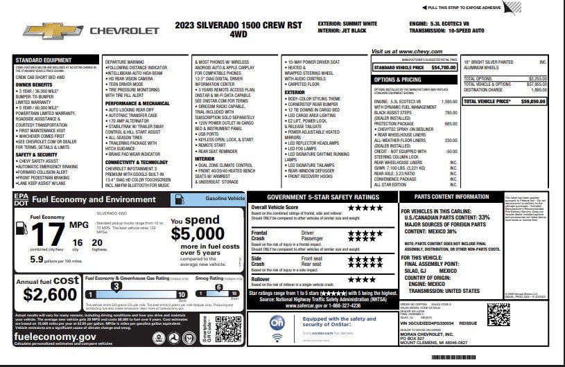 10-Way Power Driver Seat w/Lumbar, 12.3" Multicolor Reconfigurable Digital Display, 120-Volt Instrument Panel Power Outlet, 4" Black Round Assist Steps (LPO), 6-Speaker Audio System, All-Star Edition, Apple CarPlay/Android Auto, Auto High-beam Headlights, Auto-Locking Rear Differential, Automatic Emergency Braking, Automatic temperature control, Bluetooth® For Phone, Brake assist, Color-Keyed Carpeting Floor Covering, Compass, Convenience Package, Deep-Tinted Glass, Delay-off headlights, Dual Rear USB Ports (Charge Only), Dual-Zone Automatic Climate Control, Electric Rear-Window Defogger, Electrical Steering Column Lock, Electronic Cruise Control, Electronic Stability Control, EZ Lift Power Lock & Release Tailgate, Following Distance Indicator, Forward Collision Alert, Front Frame-Mounted Black Recovery Hooks, Front LED Fog Lamps, Front Pedestrian Braking, Front Rubberized Vinyl Floor Mats, Fully automatic headlights, HD Rear Vision Camera, Heated Driver & Front Outboard Passenger Seats, Heated Power-Adjustable Outside Mirrors, Heated Steering Wheel, Heated steering wheel, High Gloss Black Mirror Caps, Hitch Guidance, Inside Rear-View Mirror w/Tilt, IntelliBeam Automatic High Beam On/Off, Keyless Open & Start, Lane Keep Assist w/Lane Departure Warning, LED Cargo Area Lighting, Low tire pressure warning, OnStar & Chevrolet Connected Services Capable, Power Front Windows w/Driver Express Up/Down, Power Front Windows w/Passenger Express Down, Power Rear Windows w/Express Down, Preferred Equipment Group 1SP, Rear 60/40 Folding Bench Seat (Folds Up), Rear Rubberized-Vinyl Floor Mats, Remote keyless entry, Remote Vehicle Starter System, SiriusXM w/360L, Standard Suspension Package, Standard Tailgate, Steering Wheel Audio Controls, Steering wheel mounted audio controls, Telescoping steering wheel, Theft Deterrent System (Unauthorized Entry), Tilt steering wheel, Traction control, Trailering Package, Variably intermittent wipers, Wheels: 18" x 8.5" Bright Silver Painted Aluminum, Wireless Phone Projection, Wrapped Steering Wheel.