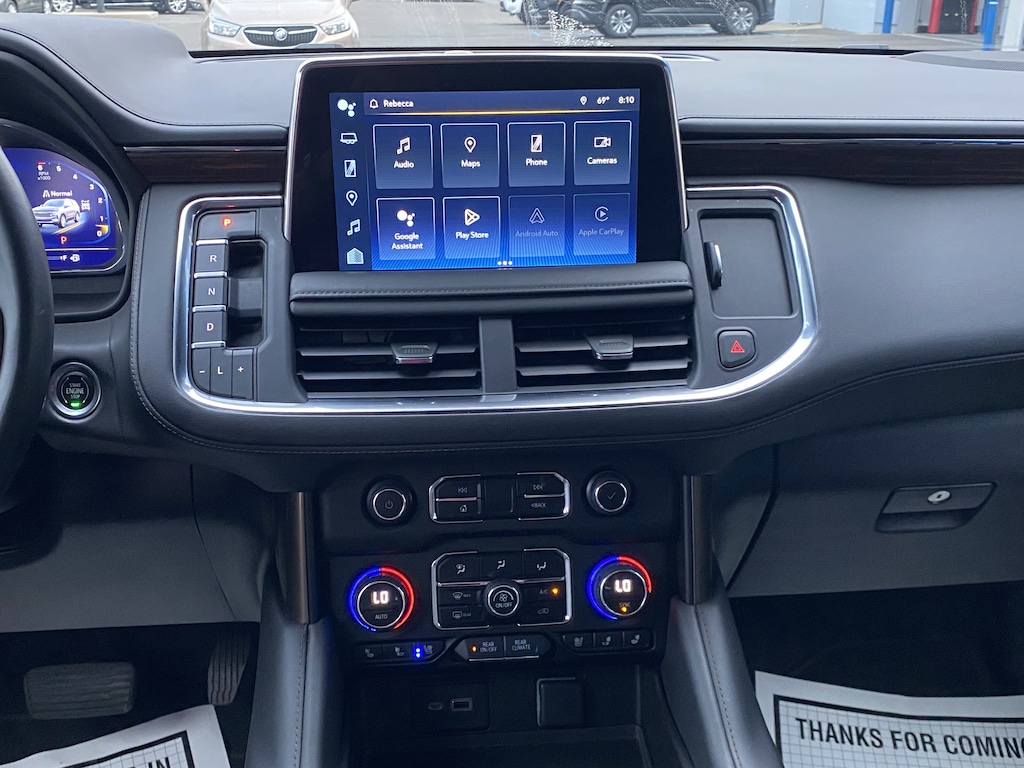 10 Speakers, 15" Diagonal Multi-Color Head-Up Display, 1st & 2nd Row Color-Keyed Carpeted Floor Mats, 2-Speed Active Electronic AutoTrac Transfer Case, 3rd Row 60/40 Power-Folding Split-Bench Seat, Adaptive Cruise Control, Adaptive suspension, Apple CarPlay/Android Auto, Auto High-beam Headlights, Auto-leveling suspension, Automatic temperature control, Bose 10-Speaker Centerpoint Surround Audio Sys Ft, Brake assist, Bright Front & Rear Door Sill Plates, Chrome Door Handles w/Body-Color Strip, Color-Keyed Carpeting Floor Covering, Driver & Front Outboard Passenger Airbags, Dual Exhaust System, Dual-Pane Power Panoramic Sunroof, Electronic Stability Control, Enhanced Automatic Emergency Braking, Enhanced Driver Information Center, Exterior Parking Camera Rear, Floor Console, Front dual zone A/C, Garage door transmitter, Hands-Free Rear Power Programmable Liftgate, HD Surround Vision, Heads-Up Display, Heated & Ventilated Driver & Front Passenger Seats, Heated 2nd Row Outboard Seats, Heated Steering Wheel, Hill Descent Control, Infotainment Display, Inside Rearview Auto-Dimming Rear Camera Mirror, Lane Change Alert w/Side Blind Zone Alert, LED Daytime Running Lamps, Magnetic Ride Control Suspension, Memory seat, Memory Settings, Molded Splash Guards, Navigation System, Outside Heated Power-Adjustable Mirrors, Perforated Leather Seat Trim, Power driver seat, Power Liftgate, Power Release 2nd Row Bucket Seats, Power Tilt & Telescopic Steering Column, Preferred Equipment Group 3LZ, Premium audio system: Chevrolet Infotainment 3 Premium, Radio: Chevrolet Infotainment 3 Premium System, Rain sensing wipers, Rear air conditioning, Rear Camera Mirror Washer, Rear Cross Traffic Alert, Rear Pedestrian Alert, Remote keyless entry, Remote Start, Safety Alert Seat, Set of 4 Wheel Locks (LPO), SiriusXM Radio w/360L, Steering wheel memory, Steering wheel mounted audio controls, Telescoping steering wheel, Tilt steering wheel, Universal Home Remote, Variably intermittent wipers, Wheels: 22" x 9" Sterling Silver Premium Painted, Wireless Charging, Wrapped Steering Wheel. CARFAX One-Owner. Clean CARFAX.
