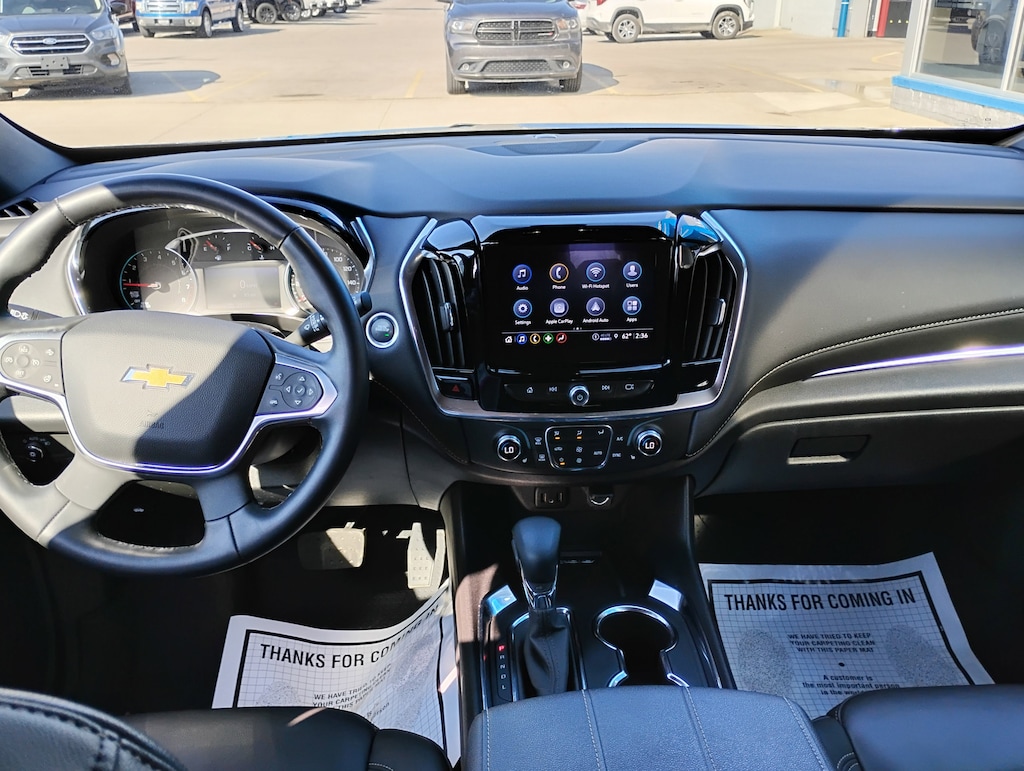 1st & 2nd Row All-Weather Floor Liner (LPO), 3rd Row All-Weather Floor Liner (LPO), 3rd row seats: split-bench, 4-Wheel Disc Brakes, 6-Speaker Audio System Feature, 6-Way Power Front Passenger Seat, 8-Way Power Driver Seat Adjuster, ABS brakes, Apple CarPlay/Android Auto, Auto High-beam Headlights, Automatic temperature control, Black Roof Rails, Brake assist, Delay-off headlights, Electronic Stability Control, Emergency communication system, Exterior Parking Camera Rear, Floor Liner Package (LPO), Four wheel independent suspension, Front dual zone A/C, Front Passenger 2-Way Power Lumbar, Fully automatic headlights, Garage door transmitter, Heated door mirrors, Heated Driver & Front Passenger Seats, Heated steering wheel, Illuminated entry, Integrated Cargo Liner (LPO), Leather-Appointed Seat Trim, Low tire pressure warning, Outside temperature display, Power door mirrors, Power Driver Lumbar Control, Power Liftgate, Power passenger seat, Preferred Equipment Group 3LT, Radio: Chevrolet Infotainment 3 Plus System, Rear air conditioning, Rear window wiper, Remote keyless entry, SiriusXM w/360L, Speed-sensing steering, Steering wheel mounted audio controls, Telescoping steering wheel, Tilt steering wheel, Traction control, Turn signal indicator mirrors, Variably intermittent wipers, Wheels: 18" Bright Silver-Painted Aluminum. CARFAX One-Owner. Clean CARFAX.