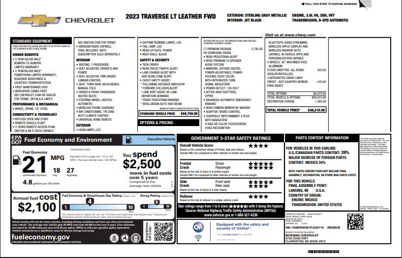 ***REMAINDER OF FACTORY WARRANTY STILL APPLIES!***, Leather Seats, LT Package, Remote Start, Rear Climate Package, 120-Volt Power Outlet, 3rd row seats: split-bench, 4-Wheel Disc Brakes, 6-Speaker Audio System Feature, 6-Way Power Front Passenger Seat, 8-Way Power Driver Seat Adjuster, ABS brakes, Adaptive Cruise Control, Apple CarPlay/Android Auto, Auto High-beam Headlights, Automatic temperature control, Black Roof Rails, Bose Premium 10-Speaker Audio System Feature, Brake assist, Delay-off headlights, Electronic Stability Control, Enhanced Automatic Emergency Braking, Exterior Parking Camera Rear, Four wheel independent suspension, Front dual zone A/C, Front Passenger 2-Way Power Lumbar, Fully automatic headlights, Garage door transmitter, HD Surround Vision, Heated door mirrors, Heated Driver & Front Passenger Seats, Heated steering wheel, Illuminated entry, Leather-Appointed Seat Trim, Low tire pressure warning, LT Premium Package, Outside Heated Power Adjustable Mirrors, Outside temperature display, Power door mirrors, Power Driver Lumbar Control, Power Liftgate, Power passenger seat, Preferred Equipment Group 3LT, Radio: Chevrolet Infotainment 3 Plus System, Radio: Chevrolet Infotainment 3 Plus System w/Navi, Rear air conditioning, Rear Camera Mirror Package, Rear Camera Mirror Washer, Rear Pedestrian Alert, Rear window wiper, Remote keyless entry, SiriusXM w/360L, Speed-sensing steering, Steering wheel mounted audio controls, Telescoping steering wheel, Tilt steering wheel, Traction control, Turn signal indicator mirrors, Upper Active Aero Shutters, Variably intermittent wipers, Wheels: 20" Machined Face Aluminum. CARFAX One-Owner. Clean CARFAX.
