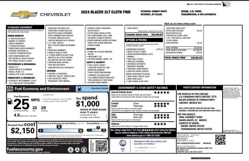 1st & 2nd Row All-Weather Floor Liners (LPO), 6-Speaker Audio System Feature, 8-Way Power Driver Seat Adjuster, Adaptive Cruise Control, Apple CarPlay/Android Auto, Auto High-beam Headlights, Automatic temperature control, Black Roof-Mounted Side Rails, Brake assist, Convenience Package, Delay-off headlights, Driver Confidence Package, Electronic Stability Control, Enhanced Automatic Emergency Braking, Floor Liner Package (LPO), Four wheel independent suspension, Front & Rear Black Bowties, Front dual zone A/C, Fully automatic headlights, Heated door mirrors, Heated Driver & Front Passenger Seats, Inside Rear-View Auto-Dimming Mirror, Integrated Cargo Liner (LPO), Lane Change Alert w/Side Blind Zone Alert, Power Driver Lumbar Control, Power driver seat, Preferred Equipment Group 2LT, Radio: Chevrolet Infotainment 3 Plus System, Rear Cross Traffic Alert, Rear Park Assist w/Audible Warning, Rear Power Programmable Liftgate, Remote keyless entry, Ride & Handling Suspension, SiriusXM w/360L, Speed-sensing steering, Steering wheel mounted audio controls, Telescoping steering wheel, Tilt steering wheel, Traction control, Universal Home Remote, Variably intermittent wipers, Wheels: 18" Grazen Metallic Aluminum, Wireless Charging. CARFAX One-Owner.