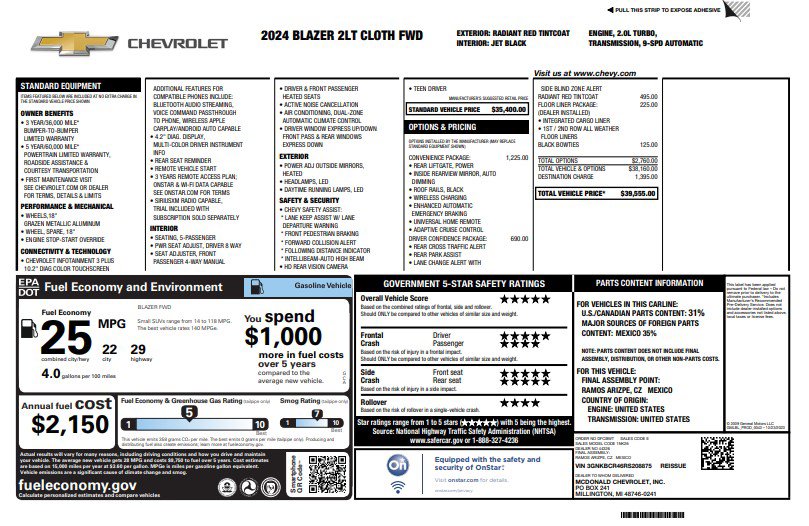 1st & 2nd Row All-Weather Floor Liners (LPO), 6-Speaker Audio System Feature, 8-Way Power Driver Seat Adjuster, Adaptive Cruise Control, Auto High-beam Headlights, Automatic temperature control, Black Roof-Mounted Side Rails, Brake assist, Convenience Package, Delay-off headlights, Driver Confidence Package, Electronic Stability Control, Enhanced Automatic Emergency Braking, Floor Liner Package (LPO), Four wheel independent suspension, Front & Rear Black Bowties, Front dual zone A/C, Fully automatic headlights, Heated door mirrors, Heated Driver & Front Passenger Seats, Illuminated entry, Inside Rear-View Auto-Dimming Mirror, Integrated Cargo Liner (LPO), Lane Change Alert w/Side Blind Zone Alert, Power door mirrors, Power Driver Lumbar Control, Preferred Equipment Group 2LT, Radio: Chevrolet Infotainment 3 Plus System, Rear Cross Traffic Alert, Rear Park Assist w/Audible Warning, Rear Power Programmable Liftgate, Remote keyless entry, Ride & Handling Suspension, SiriusXM w/360L, Speed-sensing steering, Steering wheel mounted audio controls, Telescoping steering wheel, Tilt steering wheel, Universal Home Remote, Variably intermittent wipers, Wheels: 18" Grazen Metallic Aluminum, Wireless Charging. CARFAX One-Owner. Clean CARFAX