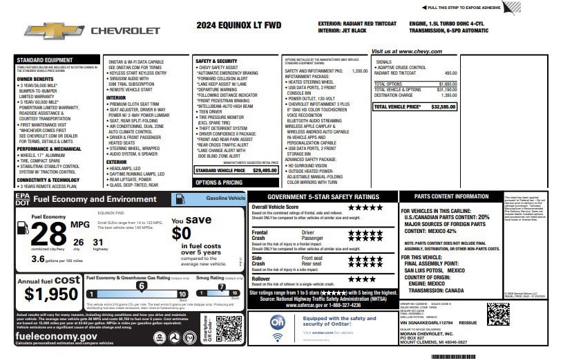 17" Aluminum Wheels, 2 Rear USB Charging-Only Ports, 2 USB Ports & Auxiliary Input Jack, 2-Way Power Driver Lumbar Control Seat Adjuster, 6-Speaker Audio System Feature, Adaptive Cruise Control, Advanced Safety Package, Auto High-beam Headlights, Automatic temperature control, Bluetooth® For Phone, Brake assist, Delay-off headlights, Driver 8-Way Power Seat Adjuster, Electronic Stability Control, Four wheel independent suspension, Front dual zone A/C, Front Passenger 4-Way Manual Seat Adjuster, Fully automatic headlights, HD Surround Vision, Heated door mirrors, Heated Driver & Front Passenger Seats, Heated Steering Wheel, Infotainment Package, Outside Heated Power-Adjustable Mirrors, Power door mirrors, Power driver seat, Power Liftgate, Preferred Equipment Group 1LT, Premium audio system: Chevrolet Infotainment 3, Radio: Chevrolet Infotainment 3 System w/AM/FM, Rear window wiper, Remote keyless entry, Safety & Infotainment Package, SiriusXM, Speed-sensing steering, Split folding rear seat, Steering wheel mounted audio controls, Telescoping steering wheel, Tilt steering wheel, Traction control, Variably intermittent wipers. Clean CARFAX.
