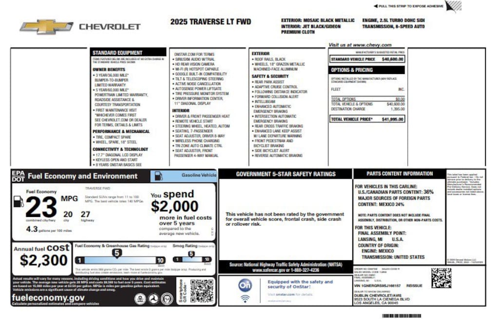 3rd row seats: split-bench, 6-Speaker Audio System Feature, 8-Way Power Driver Seat Adjuster, Apple CarPlay/Android Auto, Auto High-beam Headlights, Automatic temperature control, Delay-off headlights, Electronic Stability Control, Front dual zone A/C, Fully automatic headlights, Heated door mirrors, Heated front seats, Heated steering wheel, Illuminated entry, Navigation System, Power Liftgate, Preferred Equipment Group 1LT, Radio: Audio System w/17.7" Diagonal Display, Rear air conditioning, Remote keyless entry, SiriusXM w/360L Trial Subscription, Speed-sensing steering, Steering wheel mounted audio controls, Tachometer, Telescoping steering wheel, Traction control, Wheels: 18" Grazen Metallic Machined-Face Aluminum. CARFAX One-Owner. Clean CARFAX.