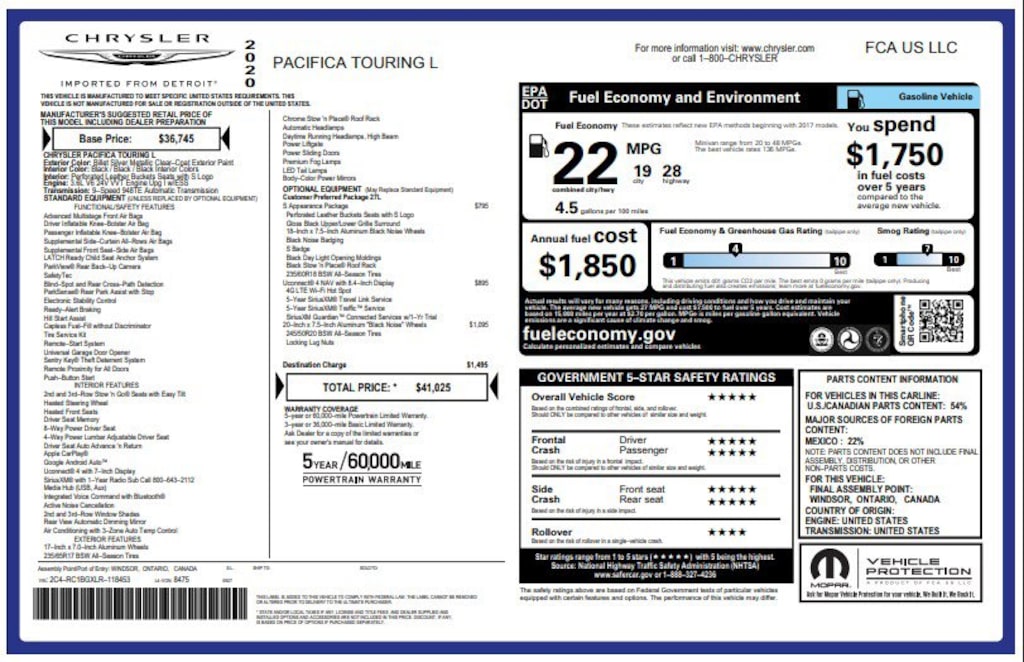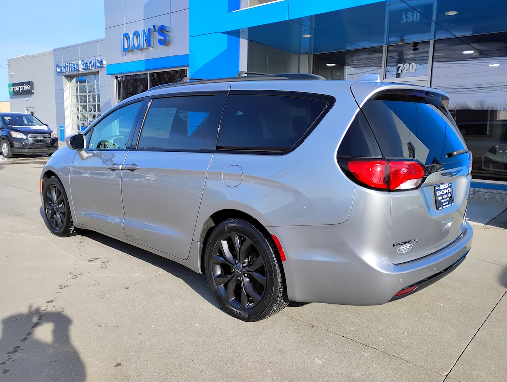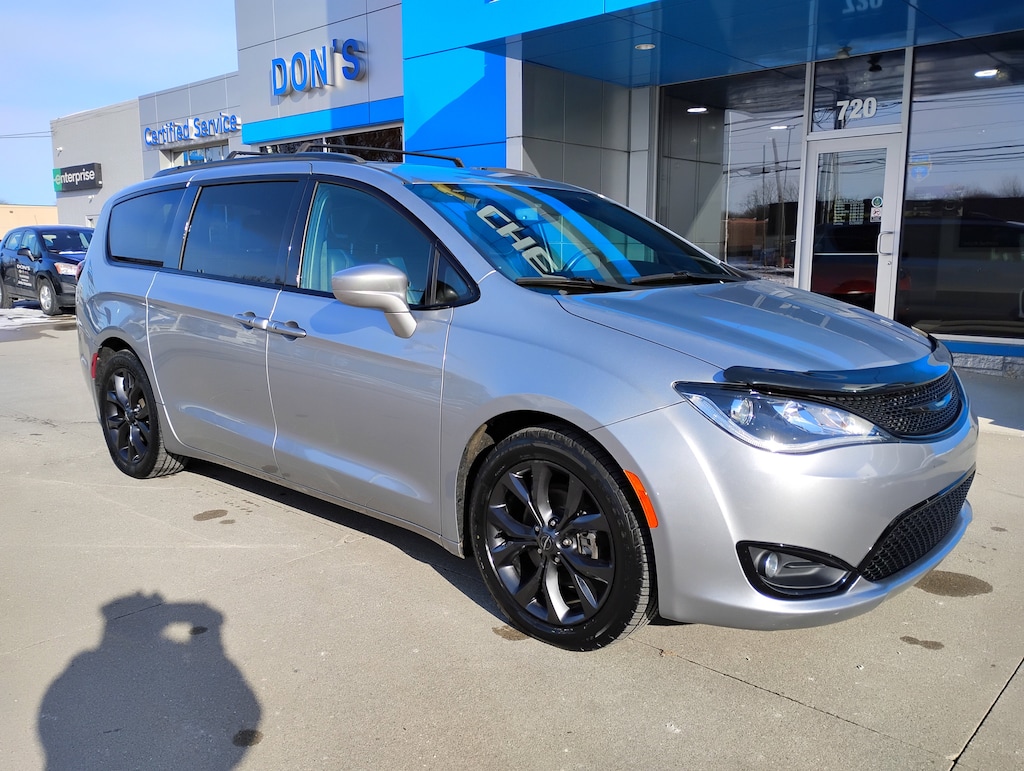 Backup Camera, Bluetooth, Leather Seats, Remote Start, 1-Year SiriusXM Guardian Trial, 4G LTE Wi-Fi Hot Spot, 5-Year SiriusXM Traffic Service, 5-Year SiriusXM Travel Link Service, Apple CarPlay, Apple CarPlay/Android Auto, Auto-dimming Rear-View mirror, Automatic temperature control, Black Badging, Black Chrysler Grille Wing Badge, Black Day Light Opening Moldings, Black Spear Rear Fascia Applique, Black Stow N Place Roof Rack, Blind Spot & Rear Cross Path Detection, Body Color Door Handles, Brake assist, Bridgestone Brand Tires, Delay-off headlights, Electronic Stability Control, Falken Brand Tires, For Details, Visit DriveUconnect.com, Four wheel independent suspension, Front Bucket Seats, Front dual zone A/C, Fully automatic headlights, Garage door transmitter, Google Android Auto, GPS Antenna Input, GPS Navigation, Heated front seats, Heated steering wheel, Illuminated entry, Integrated Voice Command w/Bluetooth, Memory seat, ParkView Rear Back-Up Camera, Perforated Leather Bucket Seats w/S Logo, Perforated Leather Trim Bucket Seats, Power driver seat, Power Liftgate, Premium Fascia Upper/Lower Grille w/Black Surround, Quick Order Package 27L, Radio: Uconnect 4C Nav w/8.4" Display, Rear air conditioning, Remote keyless entry, S Appearance Package, S Badge, SiriusXM Satellite Radio, SiriusXM Traffic Plus, SiriusXM Travel Link, Steering wheel mounted audio controls, Telescoping steering wheel, Tilt steering wheel, Touring Suspension, Traction control, USB Host Flip, Variably intermittent wipers, Wheels: 20" x 7.5" Aluminum Black Noise. CARFAX One-Owner. Clean CARFAX.