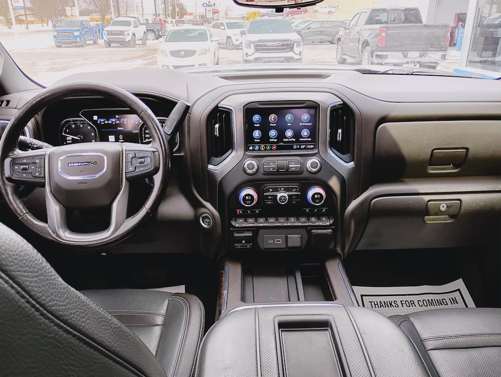 10-Way Power Driver Seat Adjuster w/Lumbar, 10-Way Power Passenger Seat Adjuster w/Lumbar, Adaptive Ride Control Suspension, Adaptive suspension, Apple CarPlay/Android Auto, Auto-dimming Rear-View mirror, Auto-Locking Rear Differential, Automatic temperature control, Brake assist, Chrome Wheel To Wheel Assist Steps, Deep-Tinted Glass, Delay-off headlights, Driver Alert Package I, Driver Memory, Electronic Stability Control, Forge Perforated Leather-Appointed Seat Trim, Front dual zone A/C, Front fog lights, Fully automatic headlights, Garage door transmitter, HD Rear Vision Camera, Heated Driver & Front Outboard Passenger Seating, Heated steering wheel, Hill Descent Control, Hitch Guidance, Hitch Guidance w/Hitch View, In-Vehicle Trailering App, Integrated Trailer Brake Controller, Keyless Open & Start, Lane Change Alert w/Side Blind Zone Alert, LED Cargo Area Lighting, Manual Tilt-Wheel & Telescoping Steering Column, Memory seat, Navigation System, Outside temperature display, Power driver seat, Power Sliding Rear Window w/Rear Defogger, Premium Bose 7-Speaker Sound System, ProGrade Trailering System, Radio: Premium GMC Infotainment Sys w/Navigation, Rear Cross Traffic Alert, Remote Vehicle Starter System, Signature Denali Grille, SiriusXM w/360L, Speed-sensing steering, Spray-On Pickup Bed Liner w/Denali Logo, Steering wheel mounted audio controls, Telescoping steering wheel, Theft Deterrent System (Unauthorized Entry), Tilt steering wheel, Traction control, Trailering Package, Ultrasonic Front & Rear Park Assist, Universal Home Remote, Variably intermittent wipers, Ventilated Driver & Front Passenger Seats, Wheels: 20" x 9" Multi-Dimensional Polished Alum, Wireless Charging.