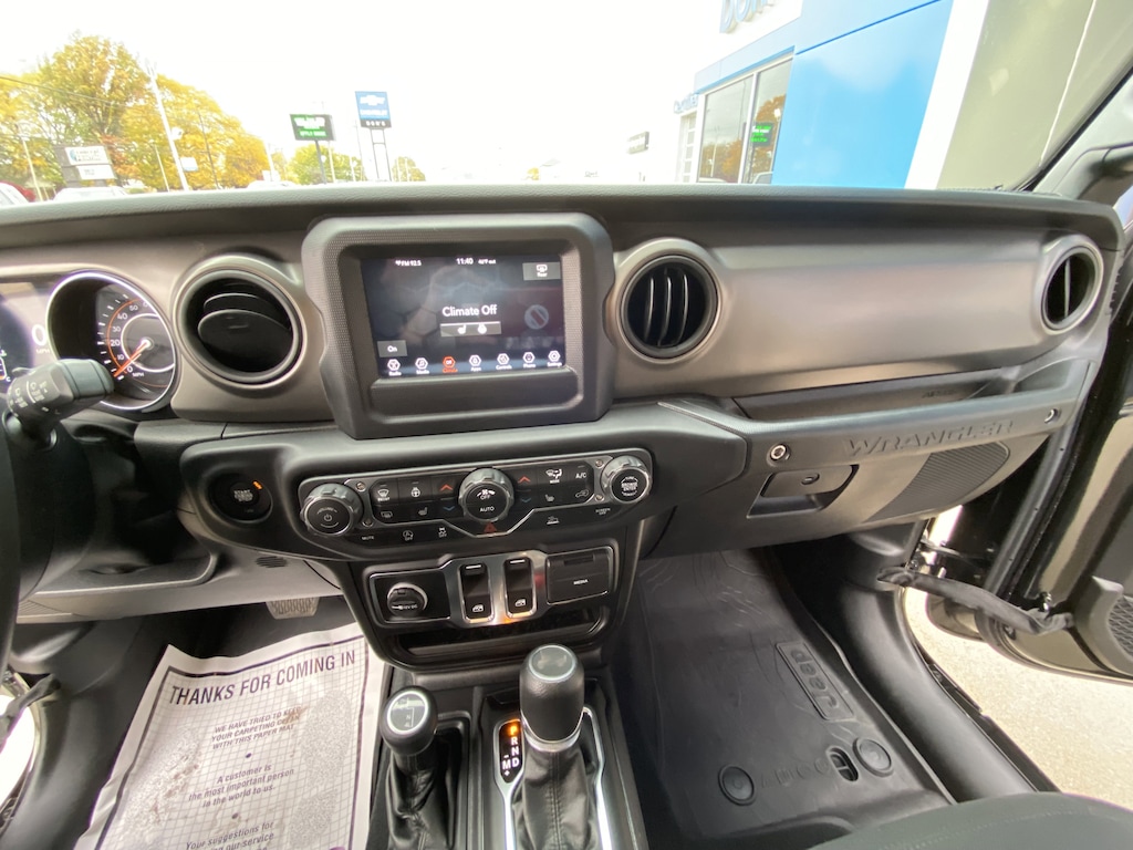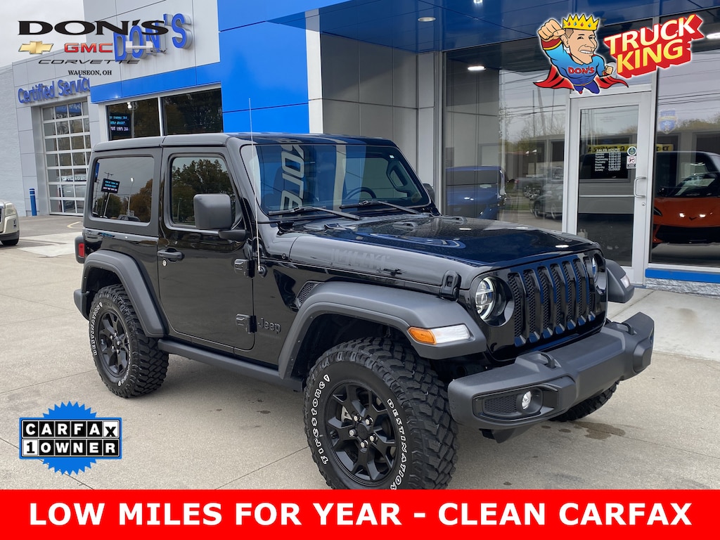 3.45 Overall Top Gear Ratio, 4-Wheel Disc Brakes, 4-Wheel Drive Swing Gate Decal, 7.0" Touchscreen Display, 8 Speakers, 97 MPH Vehicle Max Speed Calibration, ABS brakes, Air Conditioning, Air Conditioning w/Auto Temperature Control, Air Filtering, Anti-Spin Differential Rear Axle, Apple CarPlay, Automatic Headlamps, Black Grille, Black Trail Rated Badge, Brake assist, Bridgestone Brand Tires, Cluster 7.0" TFT Color Display, Cold Weather Group, Convenience Group, Deep Tint Sunscreen Windows, Delay-off headlights, Electronic Stability Control, For More Info, Call 800-643-2112, Front 1-Touch Down Power Windows, Front Door Locks 2-Door Passive Entry, Front fog lights, Global Telematics Box Module (TBM), Google Android Auto, GPS Antenna Input, Heated Front Seats, Heated Steering Wheel, Integrated roll-over protection, Integrated Voice Command w/Bluetooth, Leather Wrapped Steering Wheel, LED Headlamp & Fog Lamp Group, LED Premium Reflector Headlamps, Matte Black Jeep Badge, Mold In Color Bumper w/Gloss Black, MOPAR All-Weather Floor Mats, ParkView Rear Back-Up Camera, Power Heated Mirrors, Quick Order Package 24W Willys, Rear anti-roll bar, Rear Window Wiper/Washer, Remote Keyless Entry, Security Alarm, SiriusXM Guardian-Included Trial (B), SiriusXM Radio Service, SiriusXM Satellite Radio, Speed Sensitive Power Locks, Steering wheel mounted audio controls, Sun Visors w/Illuminated Vanity Mirrors, Tachometer, Technology Group, Telescoping steering wheel, Traction control, Universal Garage Door Opener, USB Host Flip, Variably intermittent wipers, Wheels: 17" x 7.5" Moab Black Aluminum, Willys, Willys Hood Decal. CARFAX One-Owner. Clean CARFAX.